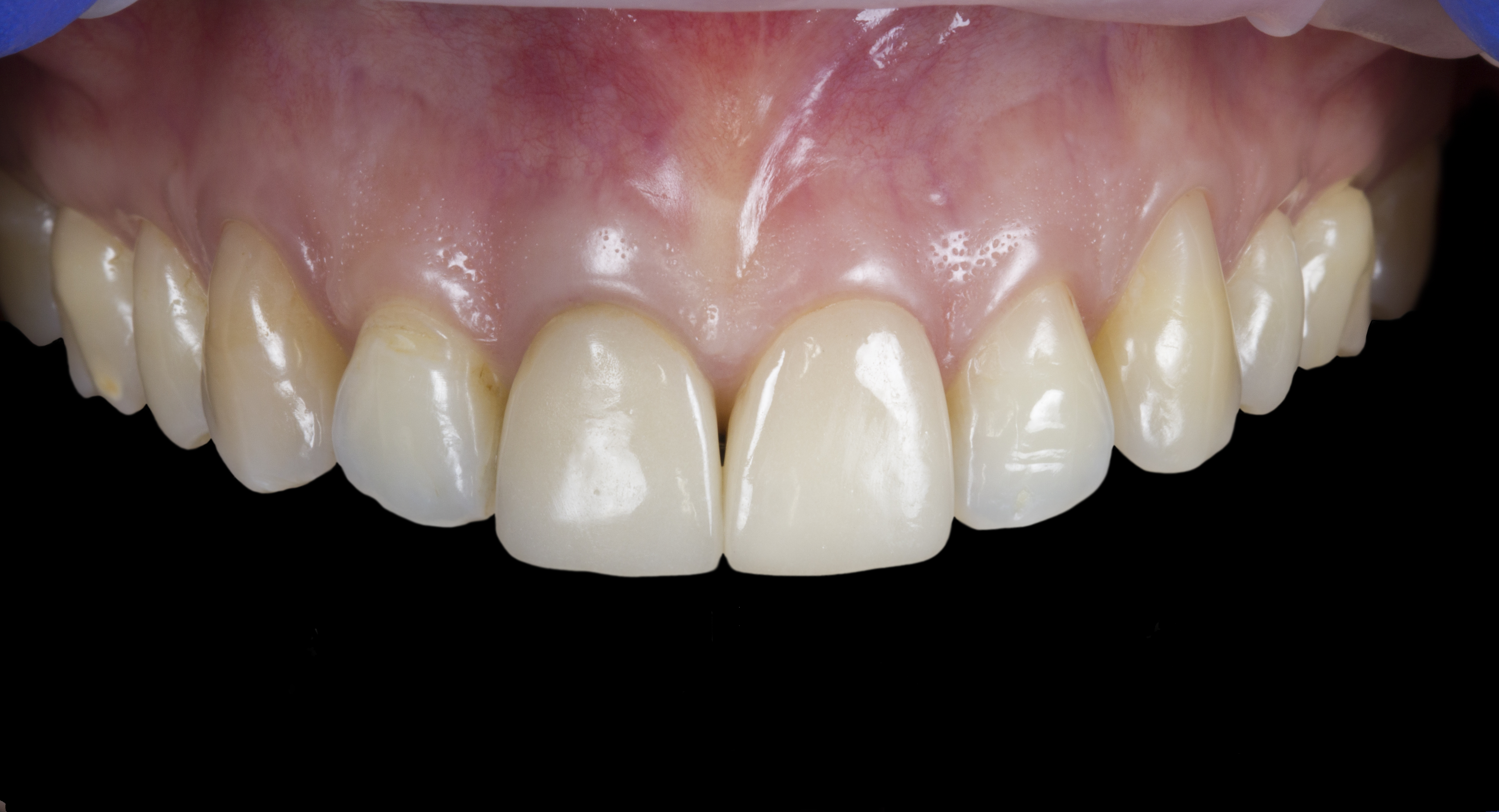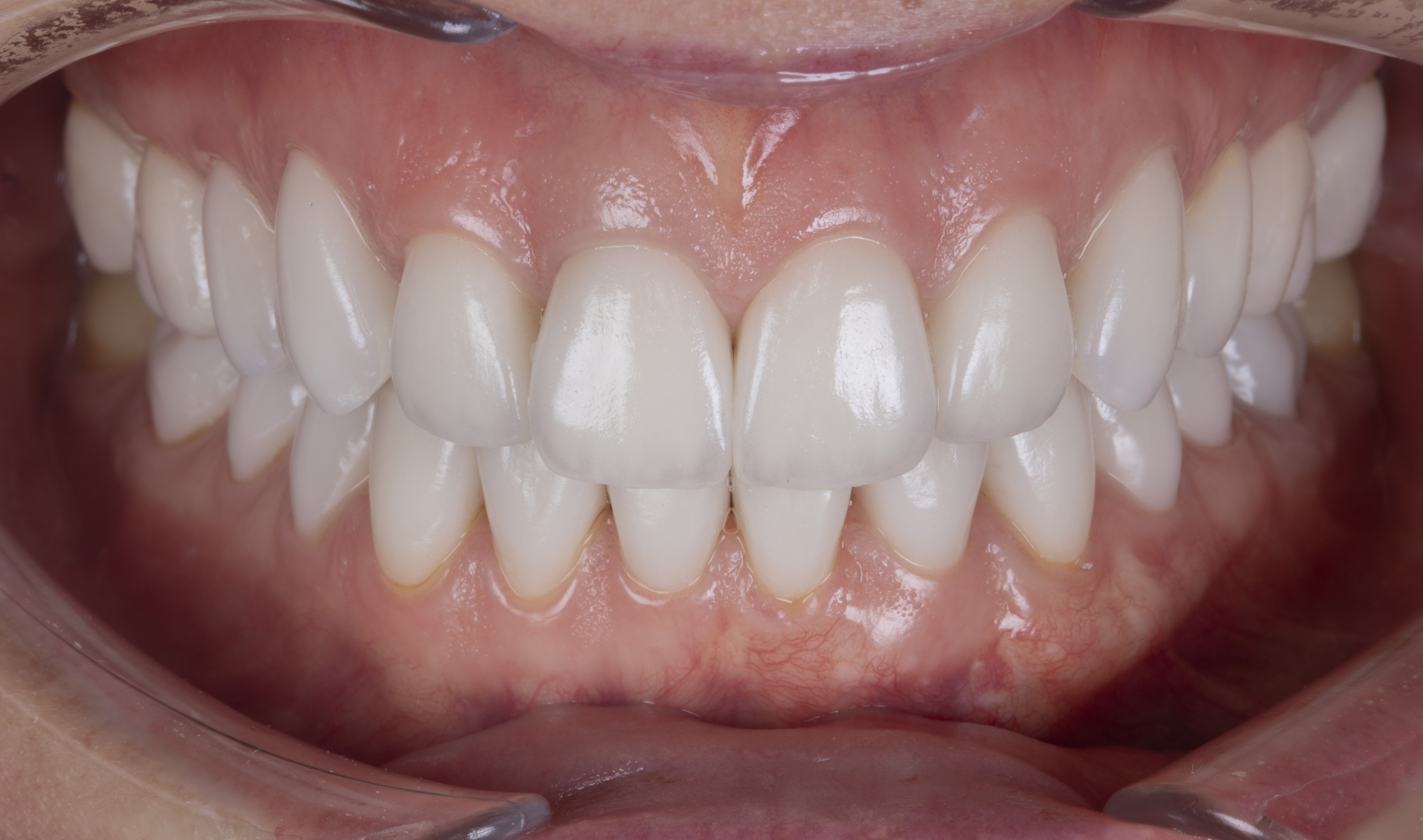 Пациентка обратилась с запросом на комплексную эстетико-функциональную реабилитацию керамическими реставрациями. Ортодонтическое лечение проходила ранее в другой клинике. Жалобы на момент обращения – неудобство жевания, невозможность удобно сомкнуть зубы в повторяемое положение, неудовлетворительная эстетика зубов и улыбки.